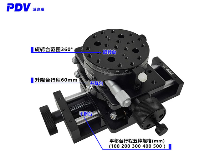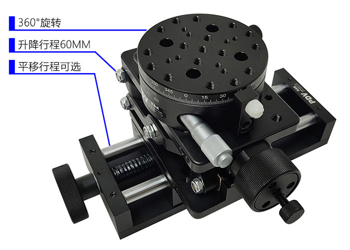 ■上下部均有标准孔距的连接孔,方便与其它位移台连接,组成多维移动台