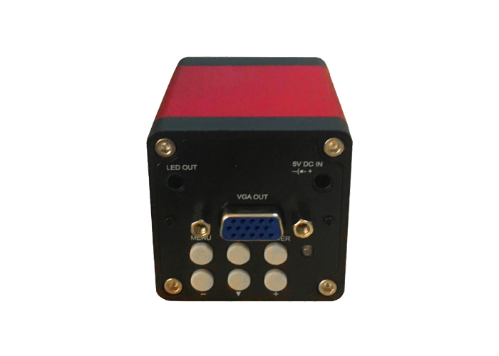 工业镜头安装在相机的CS接口,VGA OUT接口和显示器数据线连接,5V DC IN接口和 5V DC电源线连接,通上电后指示灯为绿色,说明相机已经正常工作。