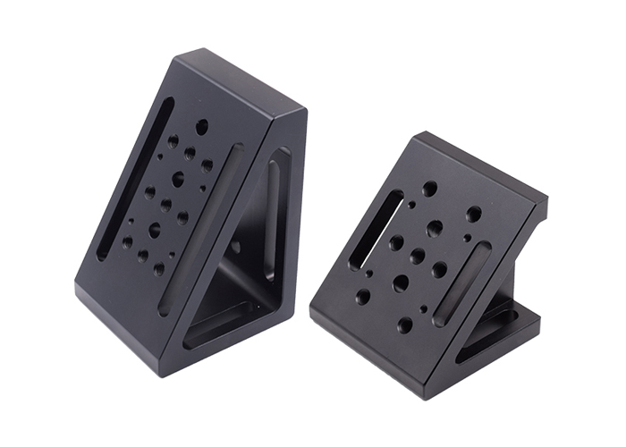 角度转接支架是一体式优质铝合金结构,横截面为三角形,具有高强度和高稳定性,用于光学固定板及移动台等机械件的组合安装。