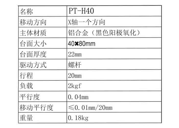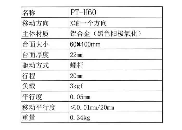 产品名称: X轴进给螺丝型手动调节台 拉伸台PT-H40/H60