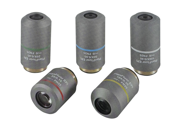 从5X到100X的物镜系列,入瞳孔位置统一,方便DIC观察