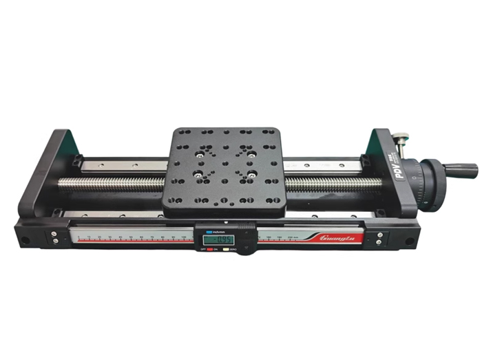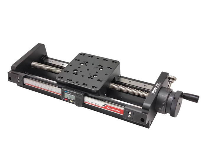 采用精密线性滑块方导轨,配合我公司特有的精密磨削工艺,能有效保证平移台的直线度、平直度等指标;