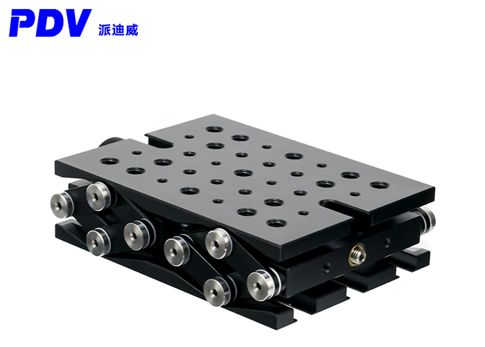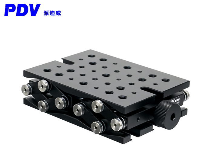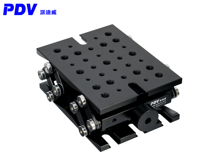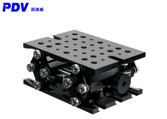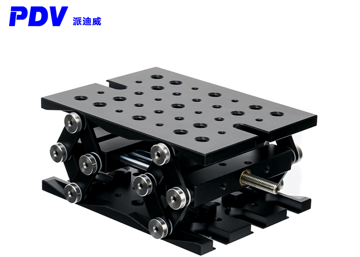 PT-SD415升降台非常适合安装需要高度调节的光机械子组件,刚性剪式设计,具有高稳定性,平行度佳,调节装置用丝杠来驱使垂直运动,丝杆运动每转一圈为0.8mm,可提供25mm的高度升降调节,且可以支撑的垂直负载高达50lbs。