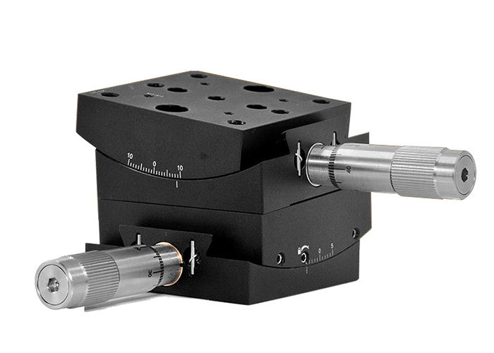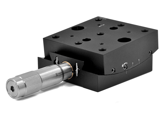 精密的燕尾式设计,结合无反冲的丝杆以及测微头,增强了顶板的角度定位能力,提供准确和可重复的定位。使用载台侧边的紧定螺丝可以将平台锁定,锁定位移台上的运动。