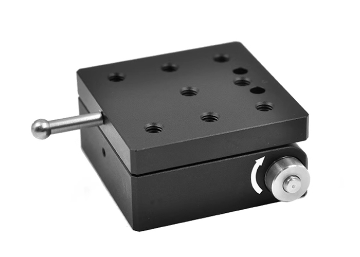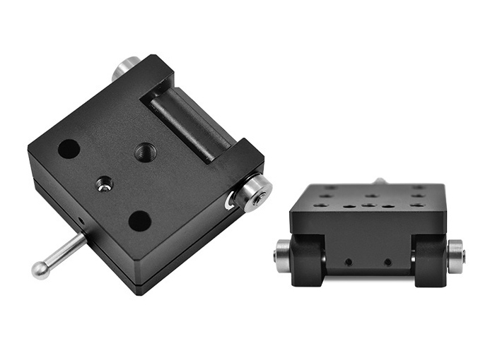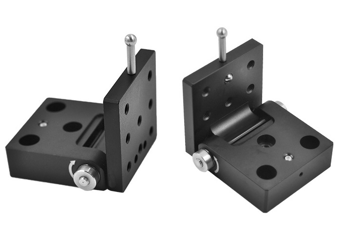 底部有5mm沉头螺纹孔底板中心的沉头孔安装时,顶板的角度可相对光学平台表面在0°与90°之间切换。台面90度翻转起到光路切换和再现的功能,光路再现性很好。