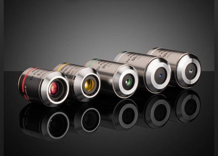 | Objectives (Magnifications) | 数值孔径NA | 工作距离WD(mm) | 焦距 (mm) | 物理聚焦深度 (um) | 重量(g) | 总放大倍数(M) | 实际视场(omm) | 聚焦深度 (um) | 总放大倍数 (M) | 实际视场(mm) | 聚焦深度(um) | |