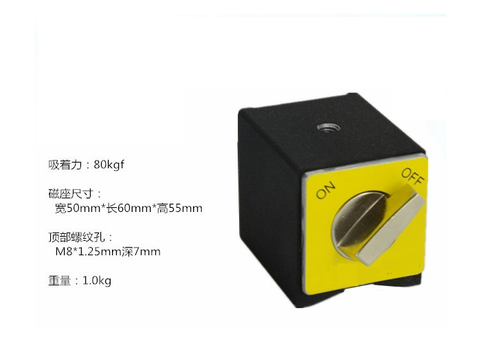 型号■特点:磁坐尺寸:宽50mm*长60mm*高55mm■顶部螺纹孔:M8*1.25mm深7mm